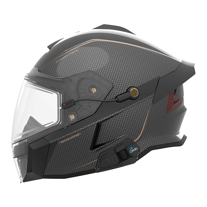 Delta V Carbon Commander — больше, чем просто шлем, это полноценная кабина летчика. Создан для дальних поездок, высоких скоростей и экстремального холода. Оснащён встроенной системой связи, панорамным визором и лёгким карбоновым корпусом. Легко общайтесь с группой до 14 человек благодаря системе Cardo Communications и динамиками JBL, обеспечивающими лучшее звучание и шумоподавление во время поездки. Инновационная вентиляционная система Venturi, встроенный спойлер и низкопрофильные антенны делают этот шлем аэродинамичным, бесшумным и устойчивым к запотеванию в любых условиях.
