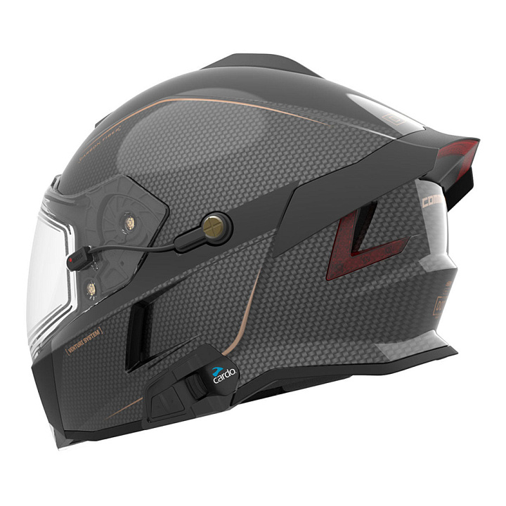 Delta V Carbon Commander — больше, чем просто шлем, это полноценная кабина летчика. Создан для дальних поездок, высоких скоростей и экстремального холода. Оснащён встроенной системой связи, панорамным визором и лёгким карбоновым корпусом. Легко общайтесь с группой до 14 человек благодаря системе Cardo Communications и динамиками JBL, обеспечивающими лучшее звучание и шумоподавление во время поездки. Инновационная вентиляционная система Venturi, встроенный спойлер и низкопрофильные антенны делают этот шлем аэродинамичным, бесшумным и устойчивым к запотеванию в любых условиях.