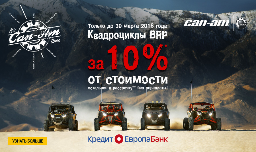 Только до 30 марта 2018 года у вас есть возможность приобрести любой квадроцикл BRP в рассрочку* с первоначальным взносом всего 10%!